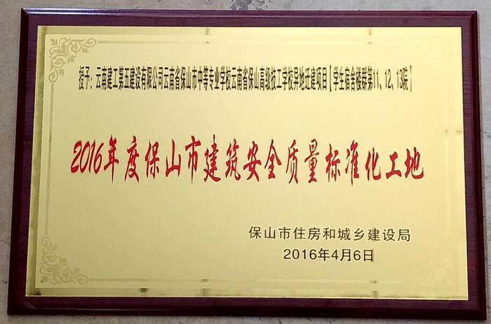 直四部:保山中等專業(yè)學(xué)校異地遷建項(xiàng)目獲“2016年度保山市建筑安全質(zhì)量標(biāo)準(zhǔn)化工地”
