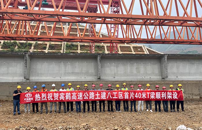 賓鶴高速巨龍箐大橋首片40米T梁完成架設(shè)