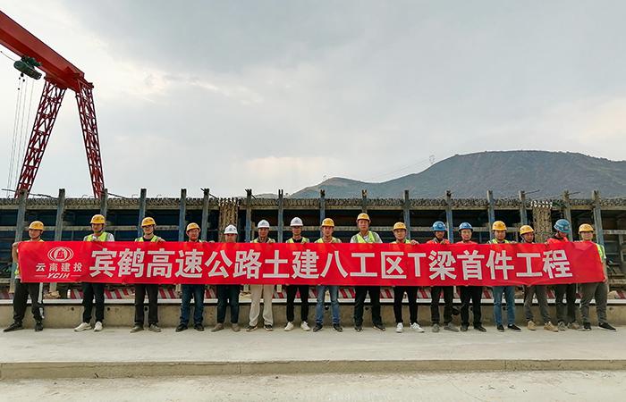 路橋五部賓鶴高速項目八工區(qū)完成首件T梁預制